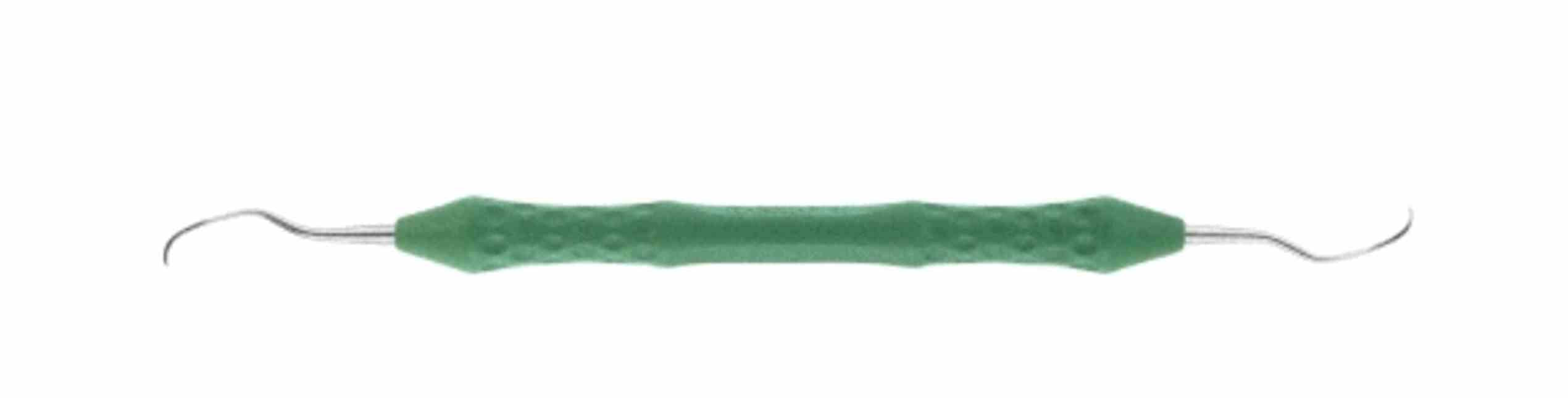 The titanium curettes for implant cleaning have very delicate working ends and make access to the implant neck easier; there is no risk of infection due to curette abrasion. Titanium minimizes the risk of damage to the implant, only 3 instruments for the upper and lower jaw, can be sharpened manually.
