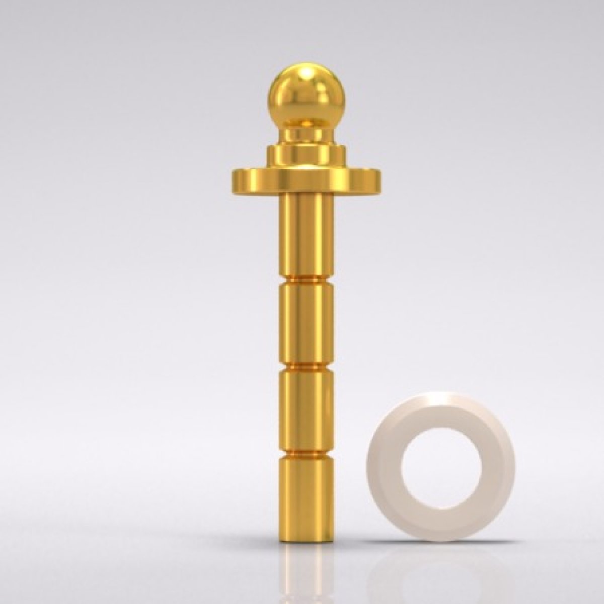 Ball abutment analogue including stabilisation ring. Material: brass/plastic.
