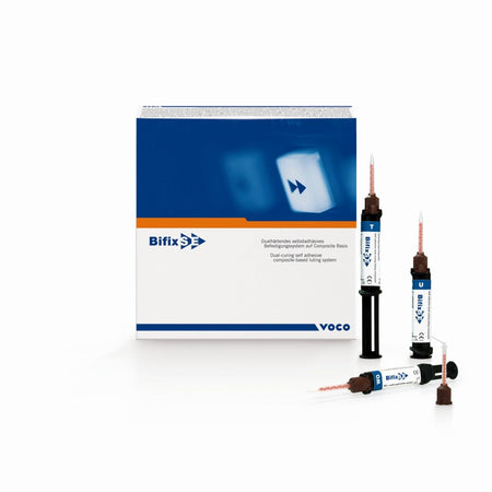 Dual-curing, self-adhesive bonding system based on composite in the QuickMix syringe.