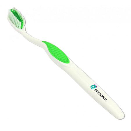 The longer outer bristles alternate with the harder inner bristles to clean the sensitive gum line and tooth surfaces