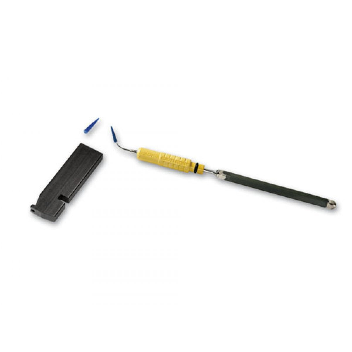 Special instrument for implant cleaning. Excellent for time-saving and effective removal of plaque and tartar from titanium implants and abutments. Suitable for all 30kHz Cavitron ultrasound devices. Use in the reduced power range "Blue Zone". The disposable tips can be replaced using the key provided. The implant insert and the key are autoclavable.