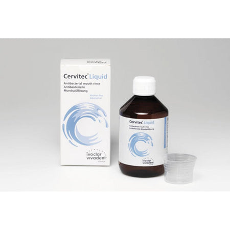 Ready-to-use mouthwash solution without alcohol with 0.1% chlorhexidine, xylitol and essential oil. The ingredients inhibit the growth of bacteria and act against inflammation in the mouth. Serves as an intensive, time-limited mouthwash treatment. In the dental practice, Cervitec Liquid is recommended to reduce the risk of aerosols; the patient rinses for 30-60 seconds before treatment. This kills bacteria and reduces the risk of infection for the practice team.