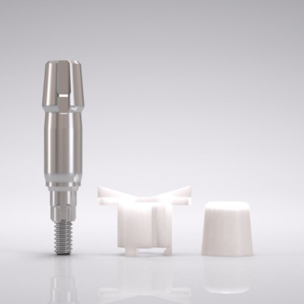 CONELOG impression post, closed tray, including repositioning aid, cap for bite registration and retaining screw, material: titanium alloy.