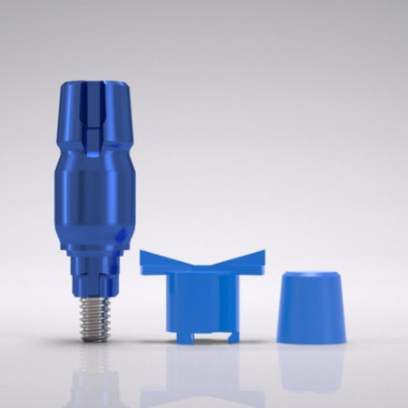 CONELOG impression post, closed tray, including repositioning aid, cap for bite registration and retaining screw, material: titanium alloy.