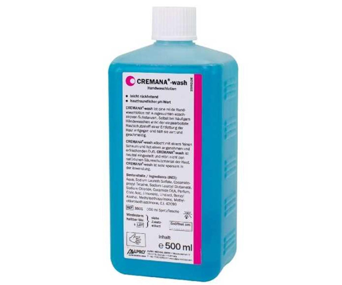 Cremana-wash Mild washing lotion for frequent hand washing. Cleanses the skin particularly gently. The skin protection substances contained maintain the skin's natural acid mantle. Cremana-wash is pH-neutral and has a pleasantly subtle scent. Sales unit: Cremana-wash, bottle 500 ml