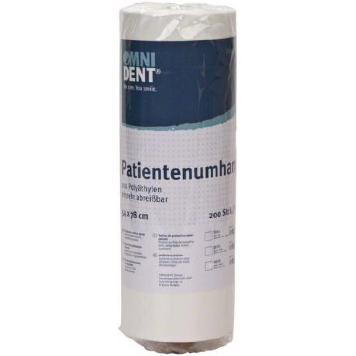 Roll of 200 white capes, 54 x 78 cm Large patient cape, with neckline and straps. Made of PE film.