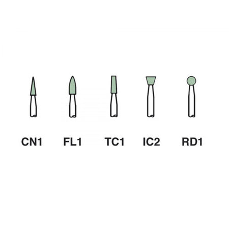 Exceptionally well suited for quick, splinter-free contouring and finishing of ceramics, composites, precious metals and amalgam.