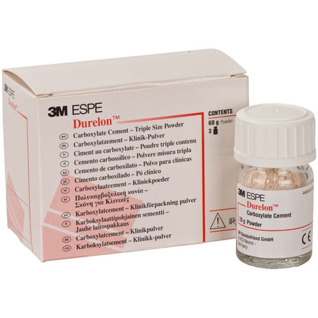 3M Durelon carboxylate luting cement as a hand-mixed variant in normal and quick-setting form or for the 3M Maxicap application system.