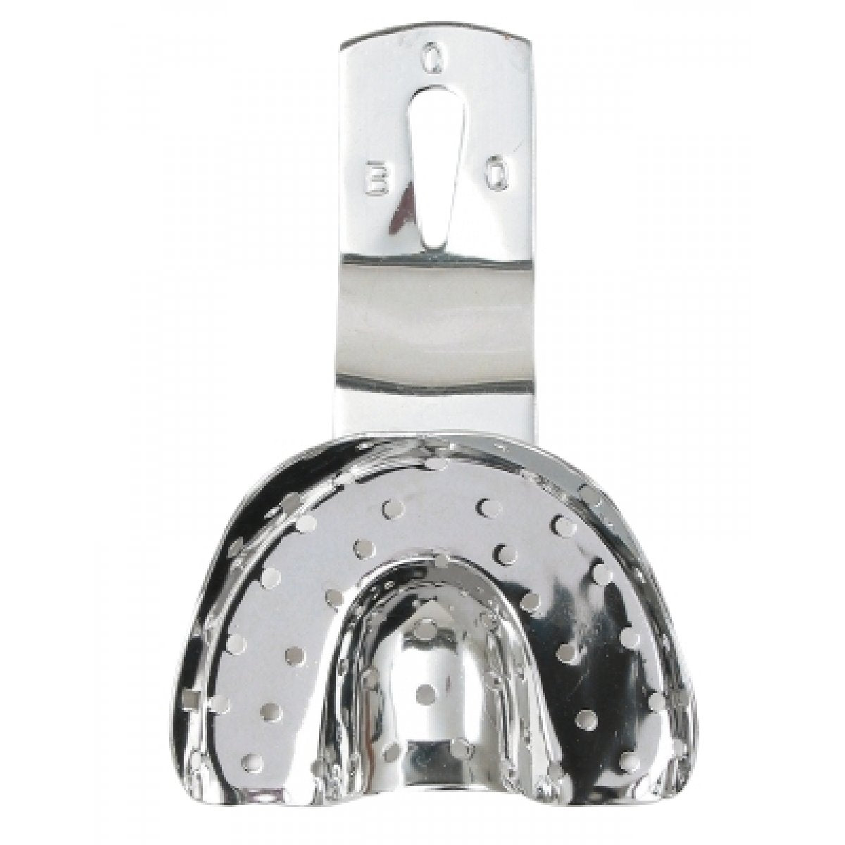 Piece OK size BO/0 5 shapes each for the upper (BO 0-4) and lower jaw (BU 0-4). Stable and torsion-resistant stainless steel material. Perforated - for perfect hold of the impression material. Rounded edges ensure an atraumatic impression. Electropolished - guarantees the highest possible corrosion resistance. Suitable for autoclave, thermal disinfection and ultrasonic cleaning (the manufacturer's guidelines must be followed exactly).