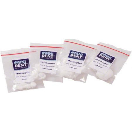Sample 4 bags (pea, hazelnut, walnut, plum) Non-sterile, highly absorbent, thread-free gauze swabs for drying cavities.
