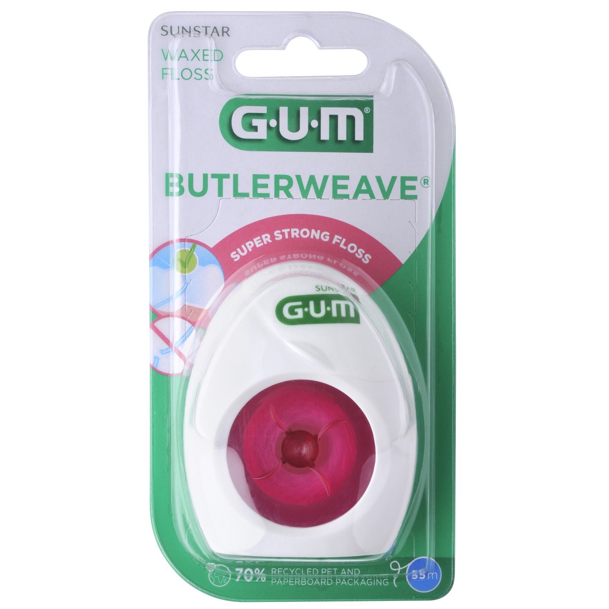Cleaning between teeth is an essential part of oral and dental care, as the toothbrush only reaches 60% of the tooth surfaces. GUM BUTLERWEAVE woven floss is a uniquely interwoven dental floss (patented) that provides stability and tear resistance. The waxed thread can be easily inserted into the interdental space and the interwoven thread provides a larger cleaning area. Also available with mint flavor.