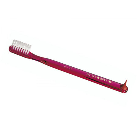 Patented domed bristle field (Dome Trim®) contributes to improved plaque removal and can help reduce gum inflammation. The GUM Classic toothbrushes also have a rubber stimulator for massaging the gums.