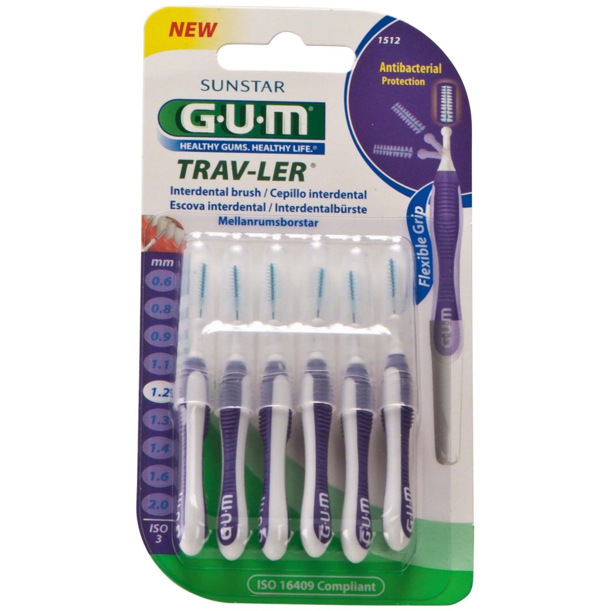 GUM TRAV-LER Interdental Brushes Blister Pack 6 Brushes Candle, violet, Ø 1.2 mm