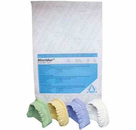 Sales unit: Hinridur, model production, type hard plaster, class 3, color blue, processing time 5 minutes, setting time 10-12 minutes, expansion 0.17%, bucket 10 kg