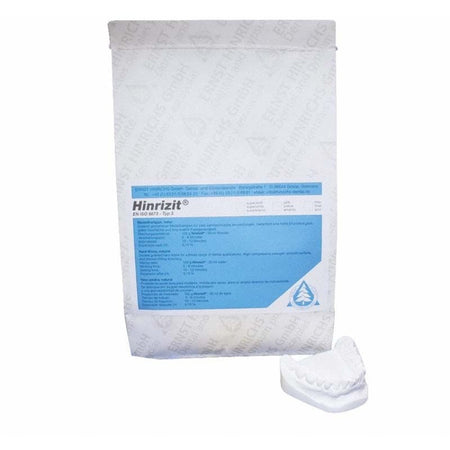 Class 3 hard plaster made from specially selected natural rock with permanent volume stability. High compressive strength, smooth surfaces and an exact fit. Hinrizit super white is particularly recommended for orthodontic work.