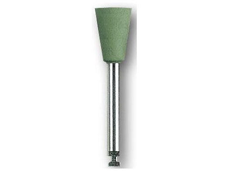 Black pre-polishers for rough removal and shaping of amalgam fillings without damaging tooth enamel. Brown polishers for pre-polishing and smoothing gold, amalgam and composite materials. Green polishers for high-gloss polishing of gold, amalgam and composite materials. Mounted for contra-angle handpiece. Recommended speed 5,000 - 10,000 rpm. One pack contains 12 pieces of a mold. Color: green Shape: Chalice