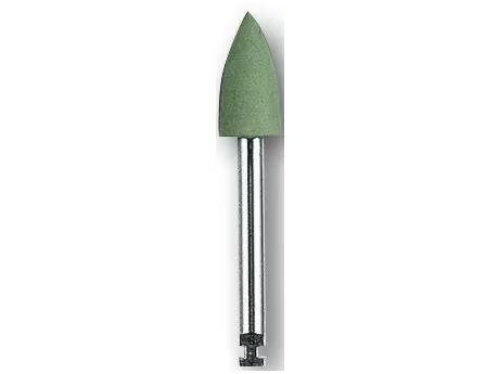 Black pre-polishers for rough removal and shaping of amalgam fillings without damaging tooth enamel. Brown polishers for pre-polishing and smoothing gold, amalgam and composite materials. Green polishers for high-gloss polishing of gold, amalgam and composite materials. Mounted for contra-angle handpiece. Recommended speed 5,000 - 10,000 rpm. One pack contains 12 pieces of a mold. Color: green Shape: Torpedo