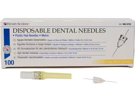 HS injection cannulas, disposable dental needles, short, 30G, Ø 0.3 × 16 mm, yellow, pack of 100
