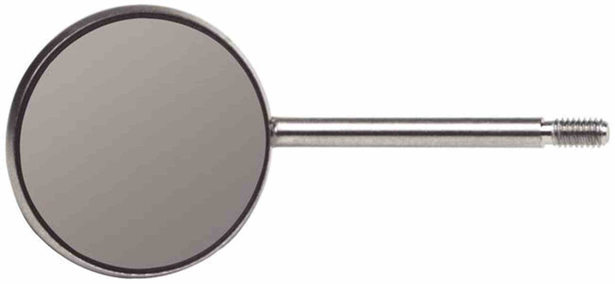 The mouth mirror is an inexpensive rhodium front mouth mirror.