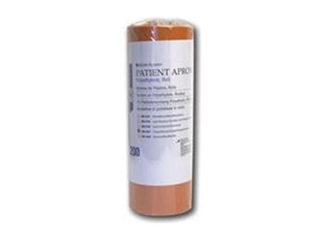 Transparent patient gown on a roll made of PE film, with neckline and straps, suitable for standard patient gown roll dispensers. Color: orange