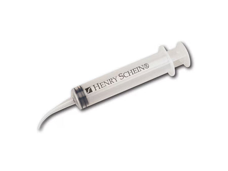 Multi-purpose irrigation syringe with pre-bent tip, 3 parts.