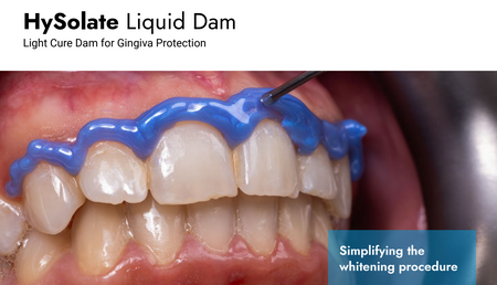 HySolate Liquid Dam is a light-curing microhybrid composite for effective gingival protection during bleaching and etching treatments. It can be precisely applied directly from the syringe, remains stable in place, and, thanks to its blue color, allows for easy, residue-free removal – with a curing time of only 10 seconds.