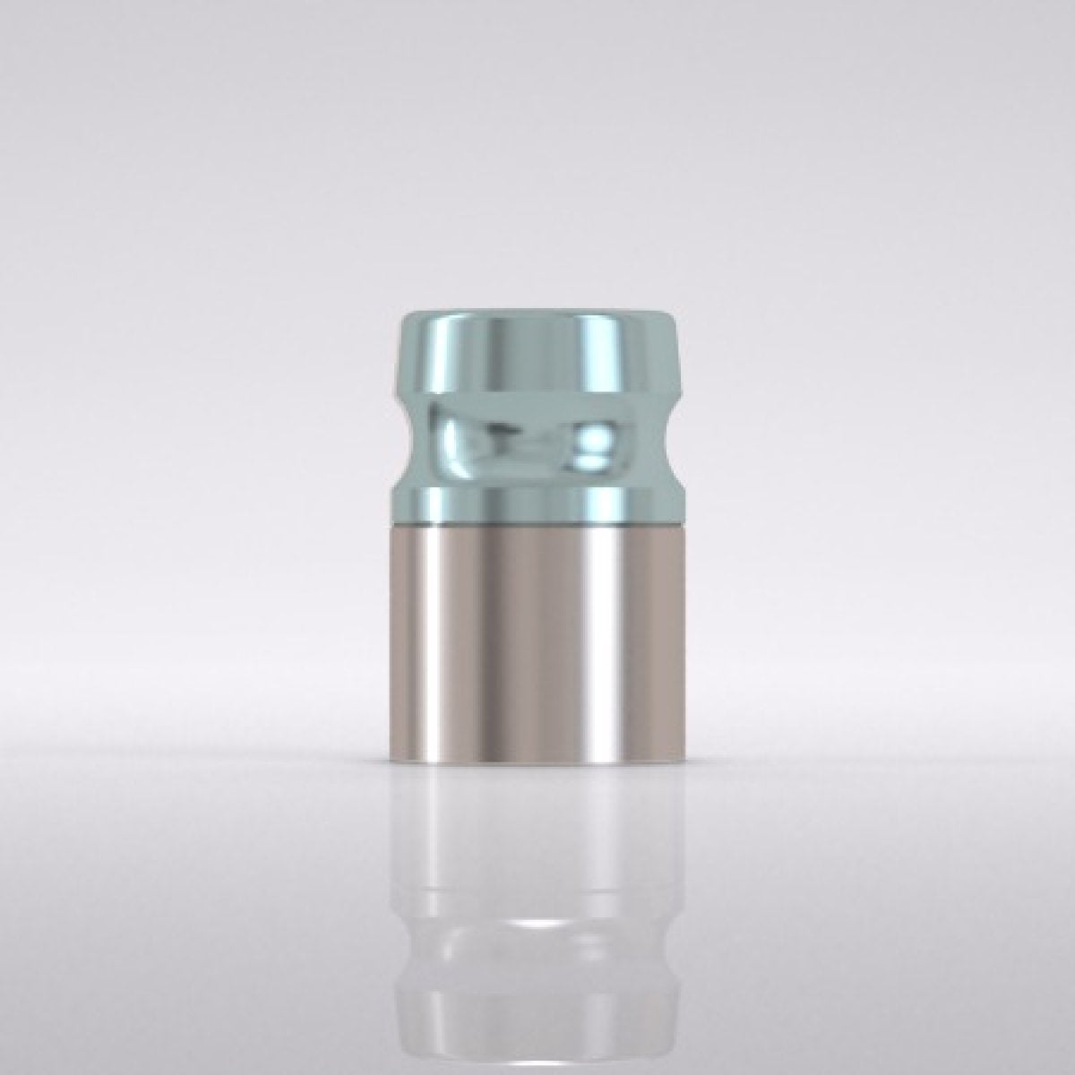 Short impression cap for bar abutment, closed tray, sterile, light blue partially anodized, material: titanium alloy.