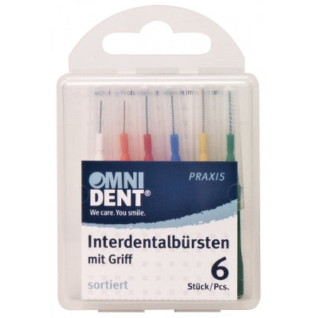 Bag of 6 assorted brushes The interdental brushes with handle (plasticized wires) are very user-friendly and ideal for patients with braces or implants.