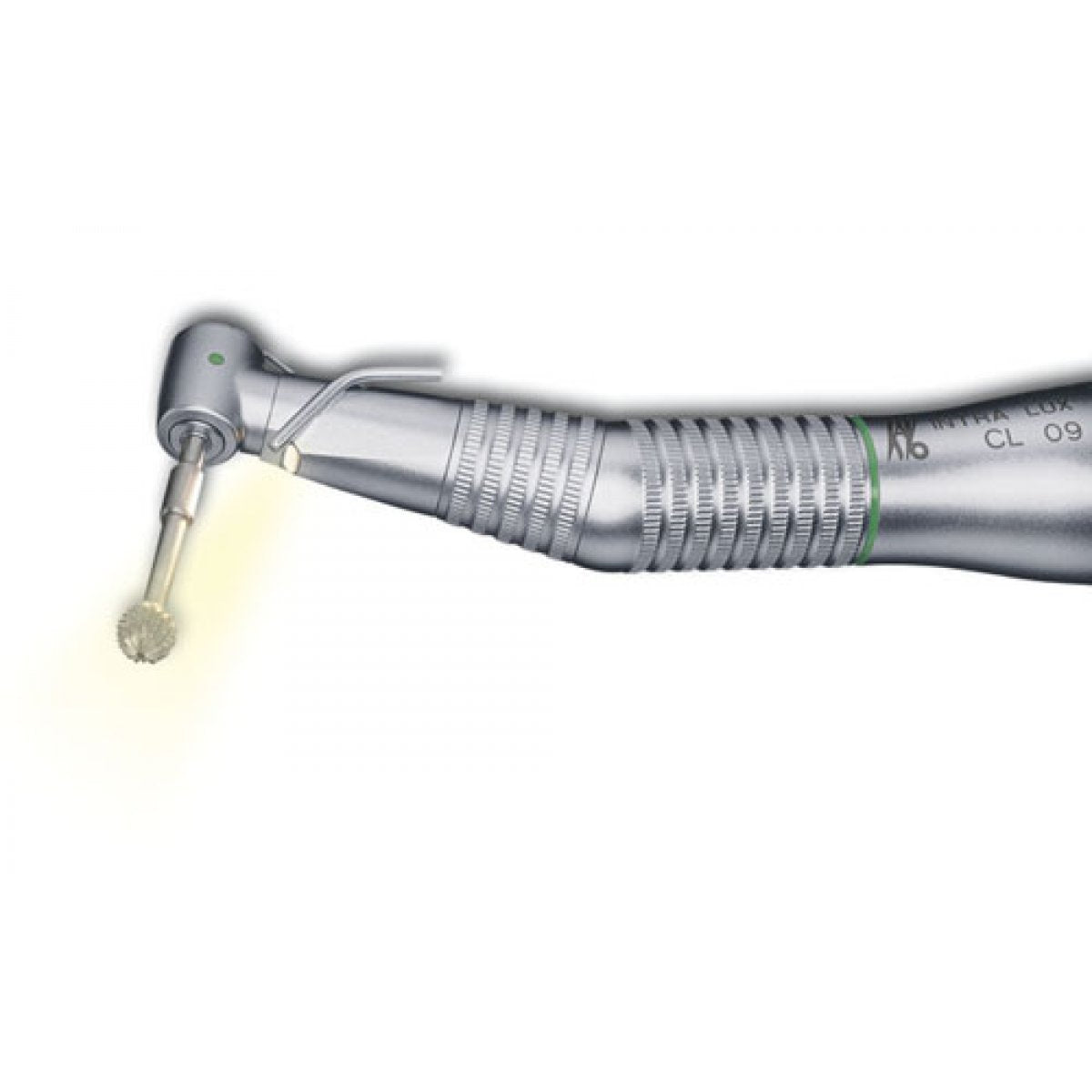 The implantology contra-angle handpiece INTRA LUX CL3-09 (with light) consists of: reducing head CL3 (reduction 3:1) with reducing base CL09 (reduction 9:1), total reduction 27:1.