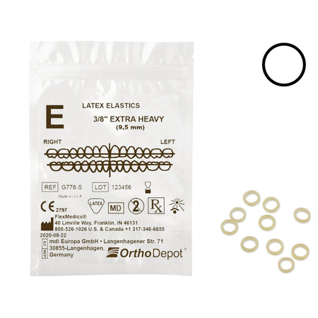 Intraoral elastics latex, 9.5mm, brown E (50 x100), 50 x patient bags with 100 pieces