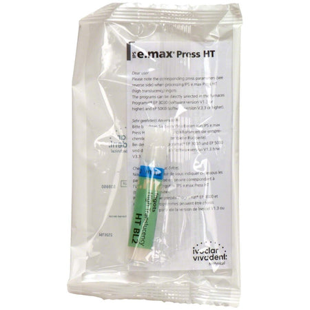 IPS e.max Press HT - blanks with high translucency (HT) are used for pressing high-strength, aesthetic inlays and veneers. IPS e.max Press LT - blanks with low translucency (LT) are used for pressing fully anatomical crowns and bridges.