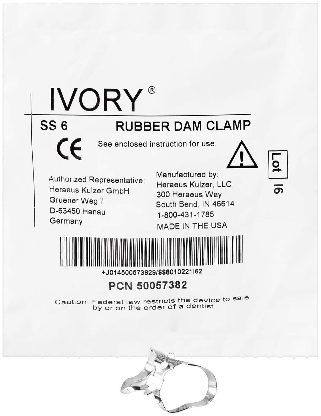 Ivory rubber dam clamps, single sizes size 6, 1 piece