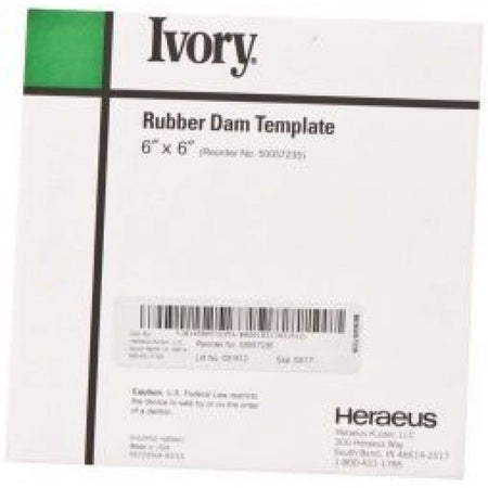 Ivory Rubber Dam Template, size 6" x 6" (152 x 152 mm), each