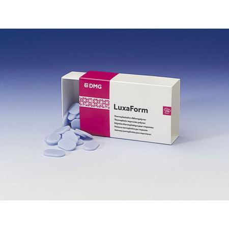 Thermoplastic impression polymer for the production of provisionals. LuxaForm becomes soft and plastic when heated in hot water.