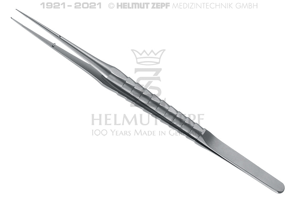 Micro tweezers, 17.5cm, 9 mm, ZEPF-Line with guide pin, 1x2 teeth, straight