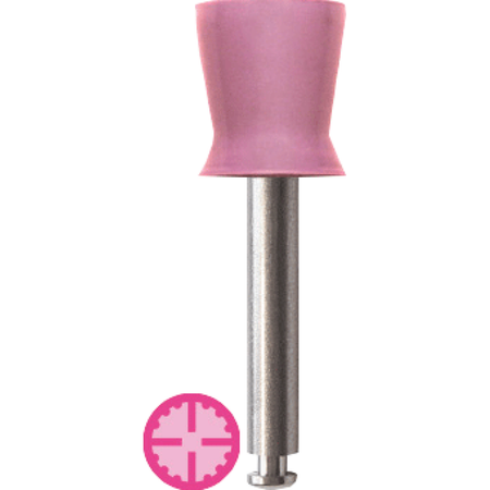 Latex-free mini prophylactic cups with high-quality, pre-assembled metal shaft. Particularly suitable for regions that are difficult to access and have little space (e.g. approximal). Also very suitable for cleaning and polishing children's teeth. Only half the size of standard polishers. For use with polishing paste to clean and polish natural teeth. With 4 slats and effective splash protection. Suitable for standard handpieces and contra-angle handpieces. Available in 3 different, color-coded hardnesses.