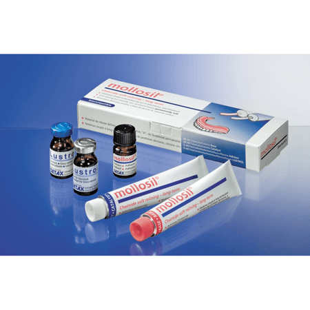 based on A-silicone, chairside, permanently soft, cold-curing. Secure adhesion to denture acrylic.