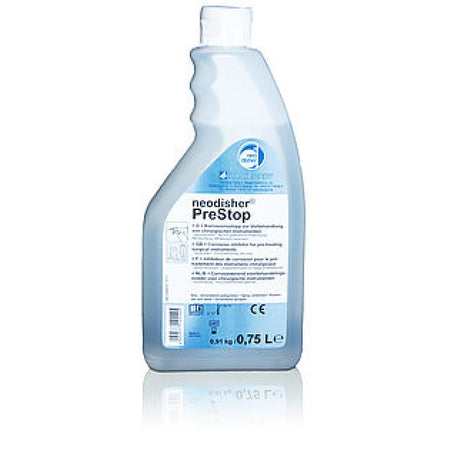 Anti-corrosive agent to spray onto surgical instruments directly after use in the operating room. Prevents pitting corrosion on stainless steel instruments caused by adhering residues of physiological saline solution. Inhibits the growth of microorganisms on the instruments during the contact time (bacteriostatic). Prevents surgical residues from drying by keeping the instruments moist.