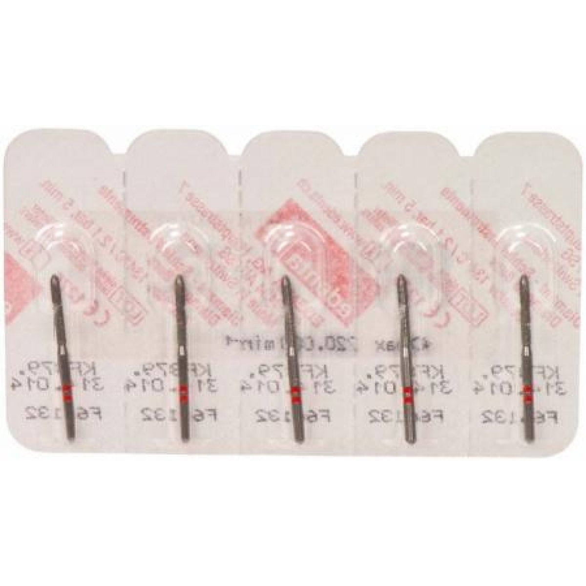 Pack of 5 diamonds, length 10 mm, ISO 014, fine The multilayer diamonds guarantee even longer service life on hard solid ceramic materials. The manufacturing process with special matrix bonding prevents individual diamond grains from breaking off and increases the service life many times over. The fine-grain diamond coating ensures optimal cutting performance and high removal rate during cutting with low vibrations. 200,000 rpm. ISO 314.
