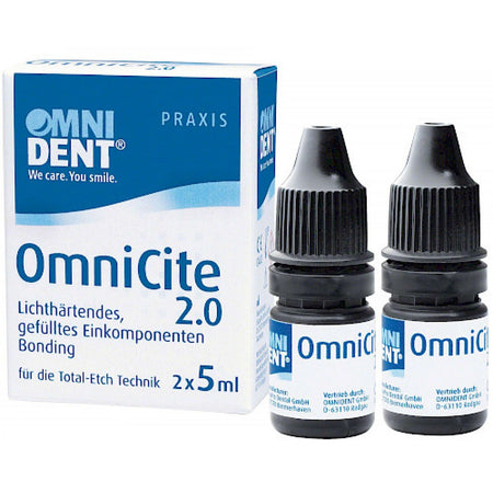 Omnicite 2.0 is a light-curing, filled, one-component bonding agent for enamel and dentin in combination with the total etch technique. Adhesive for direct, light-curing composite and compomer restorations. Can be used on slightly moist (wet bonding technique) or dry dentin, thus offering increased user safety.