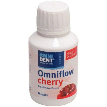 Sample 40 g powder cherry, 50-60 µm prophylactic powder for use in all conventional prophylactic powder jet devices with a pleasant taste. Omniflow Perio pro, the air polishing powder from the proven Omniflow family, is now also available for subgingival use. For a targeted reduction of bacteria even in the deepest periodontal pockets! In addition, the treatment can lead to a reduction in periodontal pocket depth. The glycine-based powder has a grain size of approx. 25 µm.