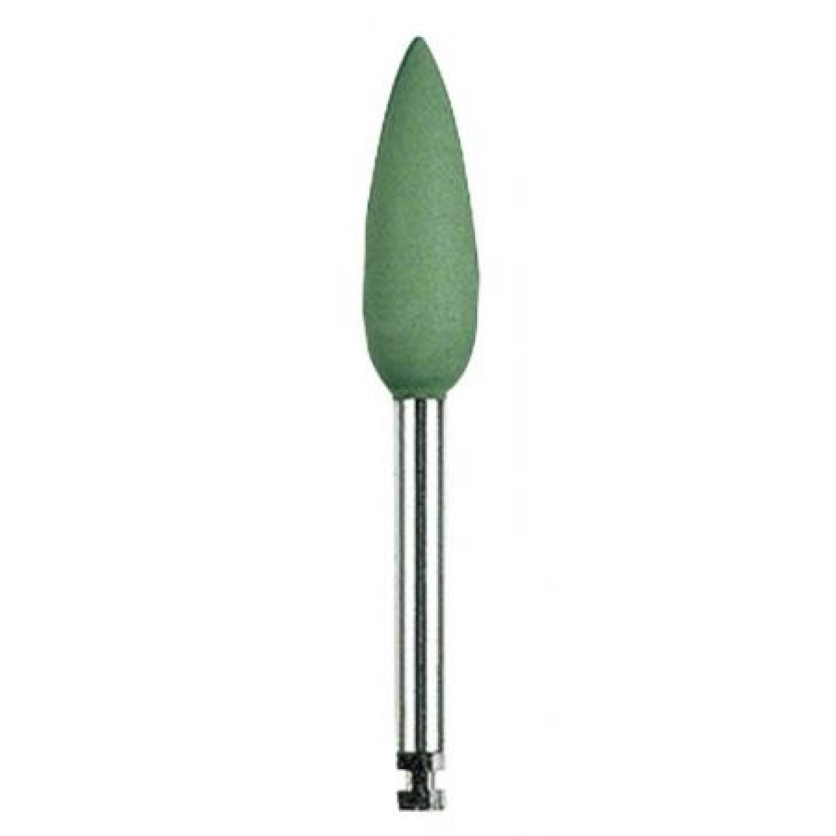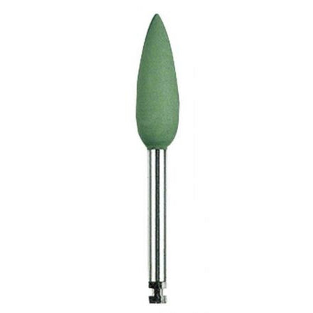 Pack of 12 Omnipol green polishers for angle pieces for gold, amalgam and composite. Brown = pre-polishing, speed: 7,000 rpm. Green = high-gloss polishing, speed: 5,000 rpm.