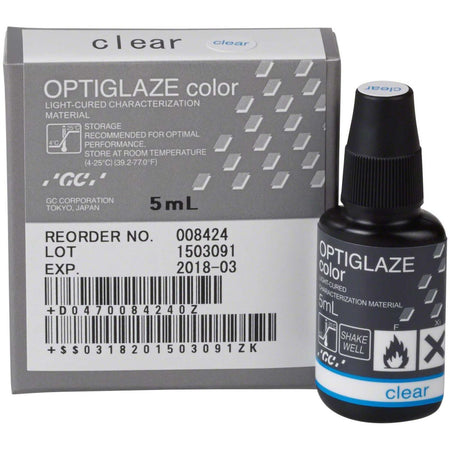 Light-curing surface sealing (characterization) for indirect composite and acrylic restorations. Everything looks better in color. Whether you are a dental technician looking for a simple solution to customize your composite restorations or want to add more depth to your milled restorations, the versatility of Optiglaze color is sure to impress you. GC Optiglaze color is a ready-to-use, light-curing, nano-filled sealing material that offers you the opportunity to ensure long-lasting color and surface shine in a very simple way.