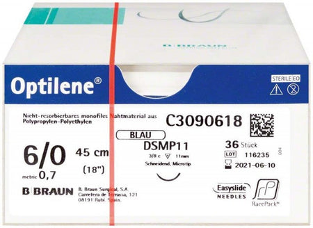 Optilene, monofilament, needle type DSMP13, USP 6/0, length 45 cm, pack of 36