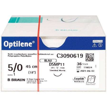 Optilene, suture material, USP 5/0, DSMP13, 45 cm, pack of 36