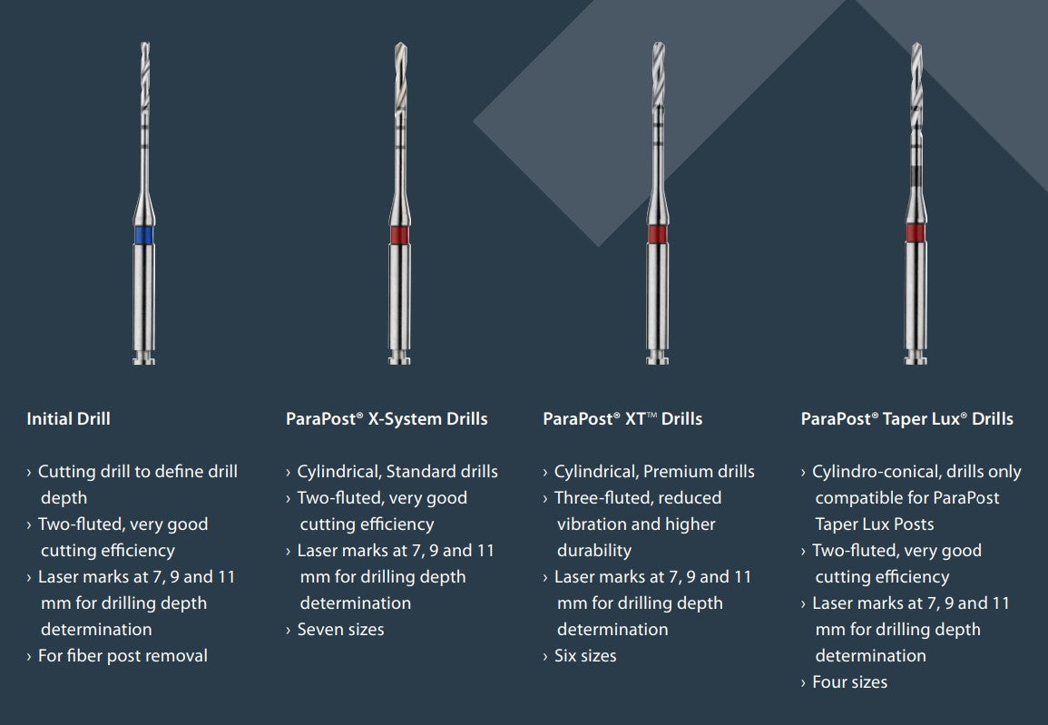 | Drill Type | Initial Drill | ParaPost® X-System Drills | ParaPost® XT™ Drills | ParaPost® Taper Lux® Drills |