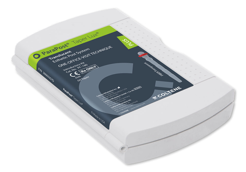 Glass fiber reinforced, metal-free root posts for aesthetic restorations. The new ParaPost Taper Lux is a translucent root post with a cylindro-conical post shape. This shaft shape is particularly suitable for anatomically slender roots and supports modern greater taper root canal preparation thanks to the 4% taper in the apical third. The three-part, rounded retention head can be easily adapted to the respective space conditions without sacrificing the ParaPost-typical, tension-reducing retention design for the residual limb build-up. Loss of retention area is minimized.