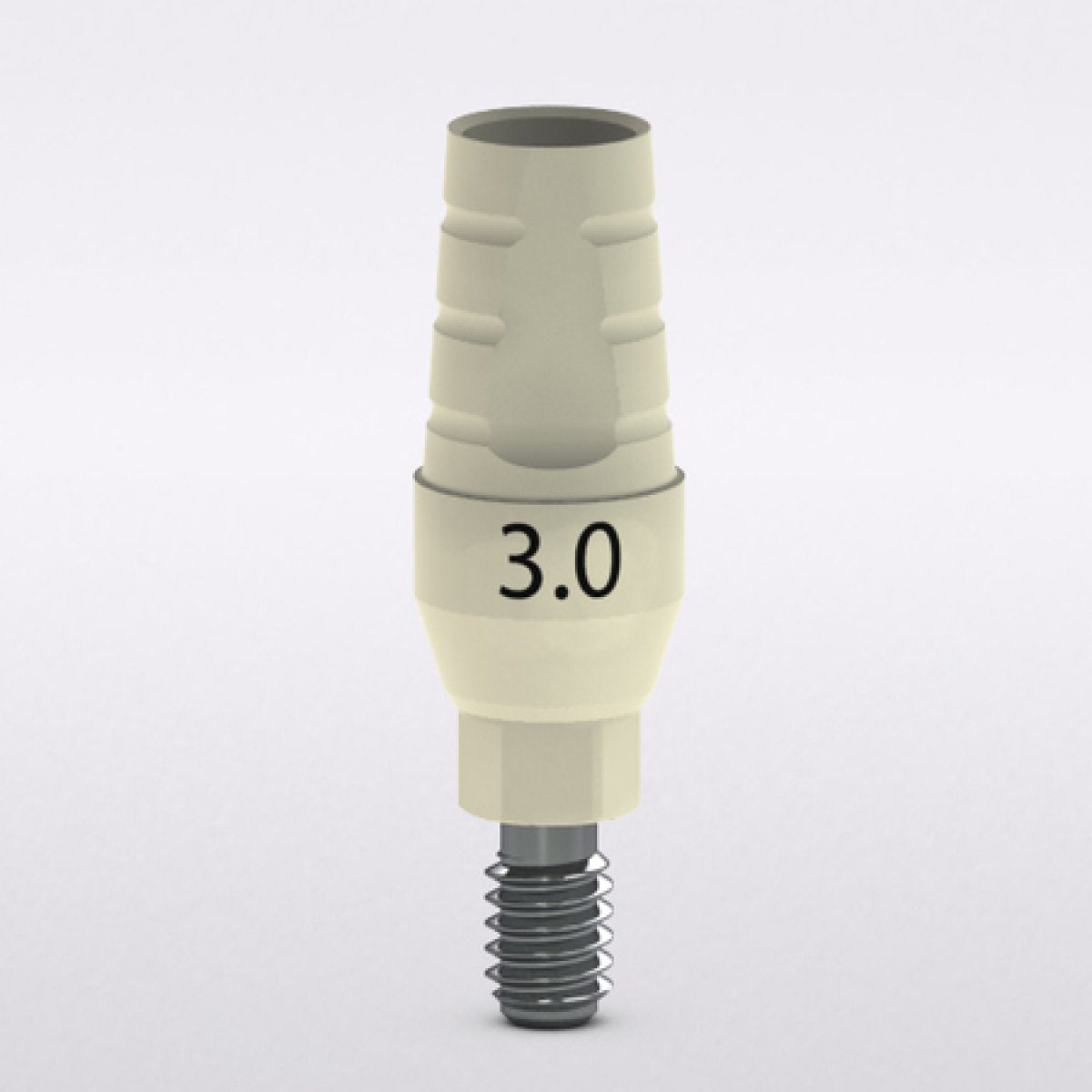 For use with a tabletop scanner or for intraoral scanning. Can also be used for the fabrication of cemented or screw-retained provisional restorations (up to 30 days). Supplied with an abutment screw (PXAS). Material: PEEK (polyetheretherketone). Torque: 30 Ncm.