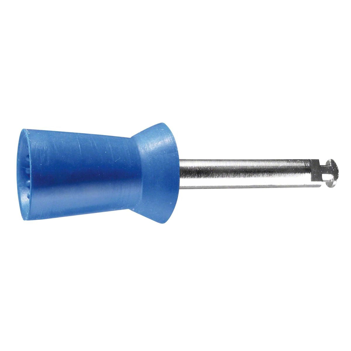 Rubber polishers/polishing cups with lamellas on angle piece mandrel. The collar on the mandrel effectively prevents the unwanted penetration of polishing agents into the sensitive bearing parts of the handpieces or angle pieces used.