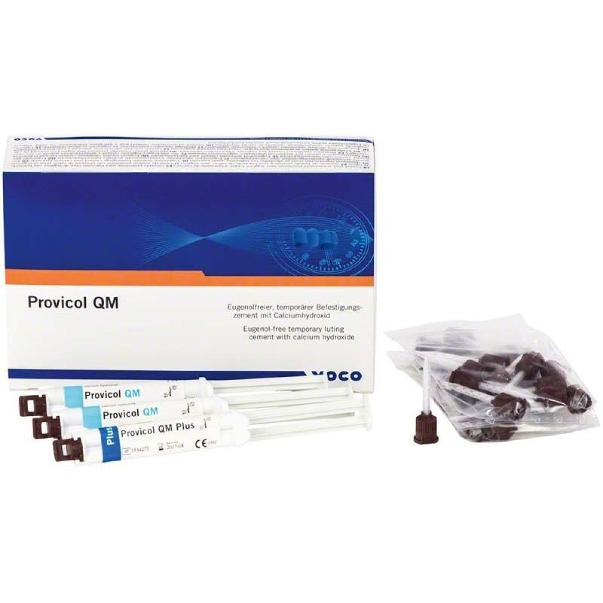 Temporary cement with even better adhesion. All the advantages of the proven Provicol QM, but now with even better adhesion: Thanks to its higher strength, the new temporary cement Provicol QM Plus is ideal for use in clinical situations where particularly strong adhesion is required. Like all products in the Provicol family, Provicol QM Plus is eugenol-free and therefore has no influence on the curing and properties of composite materials that may subsequently be used for permanent bonding. Provicol QM Plus also contains calcium hydroxide, which promotes the formation of secondary dentin and has a bacteriostatic effect, as well as zinc oxide, which is known for its antibacterial effect.